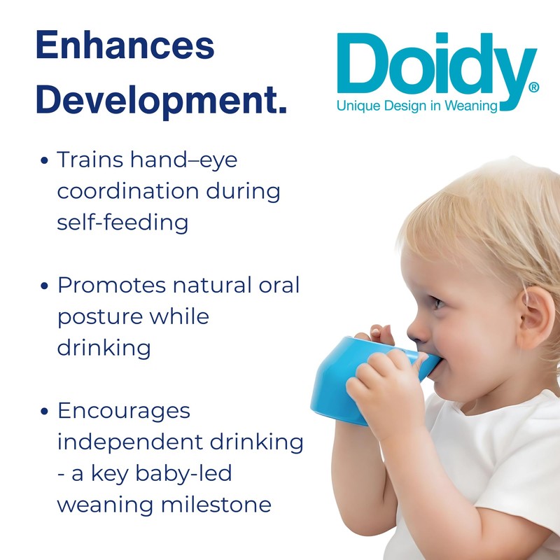 - FROM BABY BOTTLE TO WEANING CUP – Doidy Cup has been designed to ease the transition to open cup, teaching natural drinking at the rim without the need for spouts, straws or valves, as recommended by dentists and speech specialists.