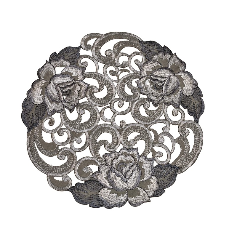 Doily Boutique Round Doily with Cutwork Gray and Silver Roses on Material Size 11 inches