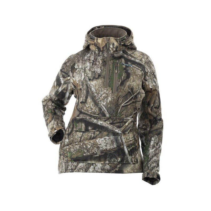 - A two-way kangaroo pocket with hook & loop closure on top entrance allows you to store your valuables or keep your hands warms while in the woods