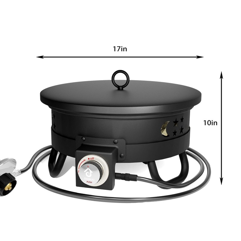 DOINUO Outdoor Portable Gas Fire Pit with Volcanic Stone, Valve Knob Ignition Gas Fire Bowl, Perfect for Camping, RV Travel, 17Inch 58,000 BTU Black