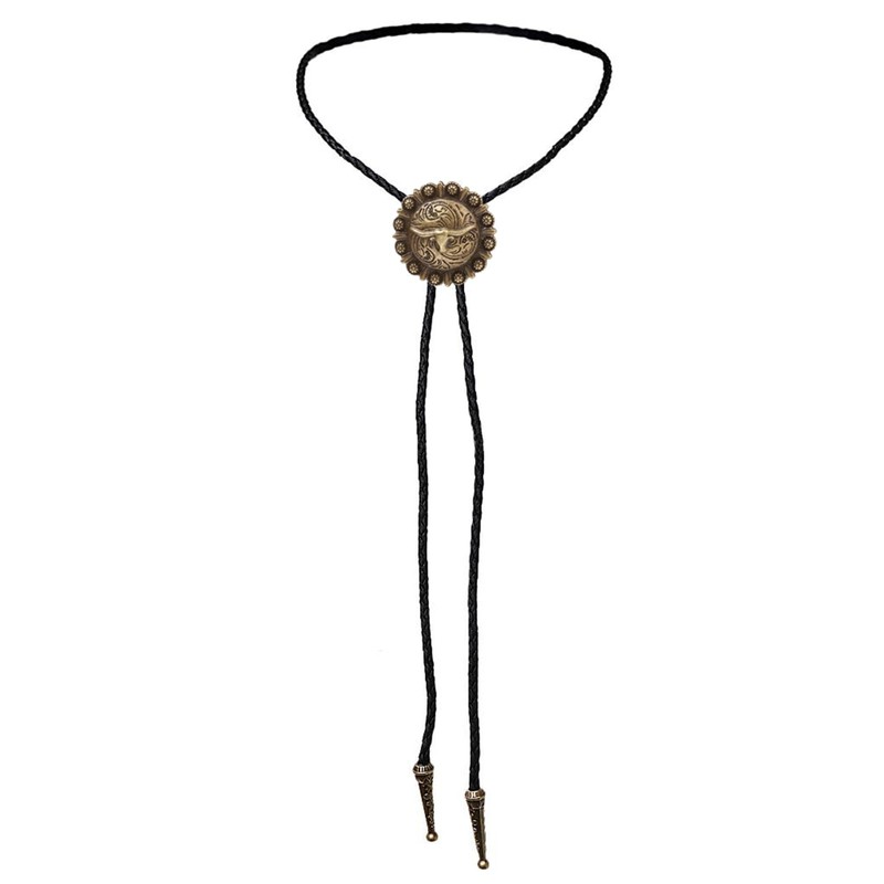 Doitby Western Longhorn Bolo Tie for Men, Genuine Leather Cowboy Necktie Necklace Bolo Tie for Men Women