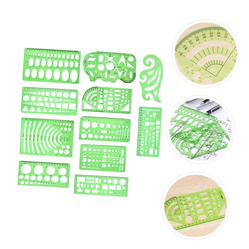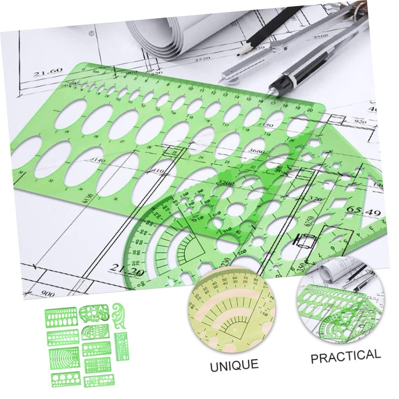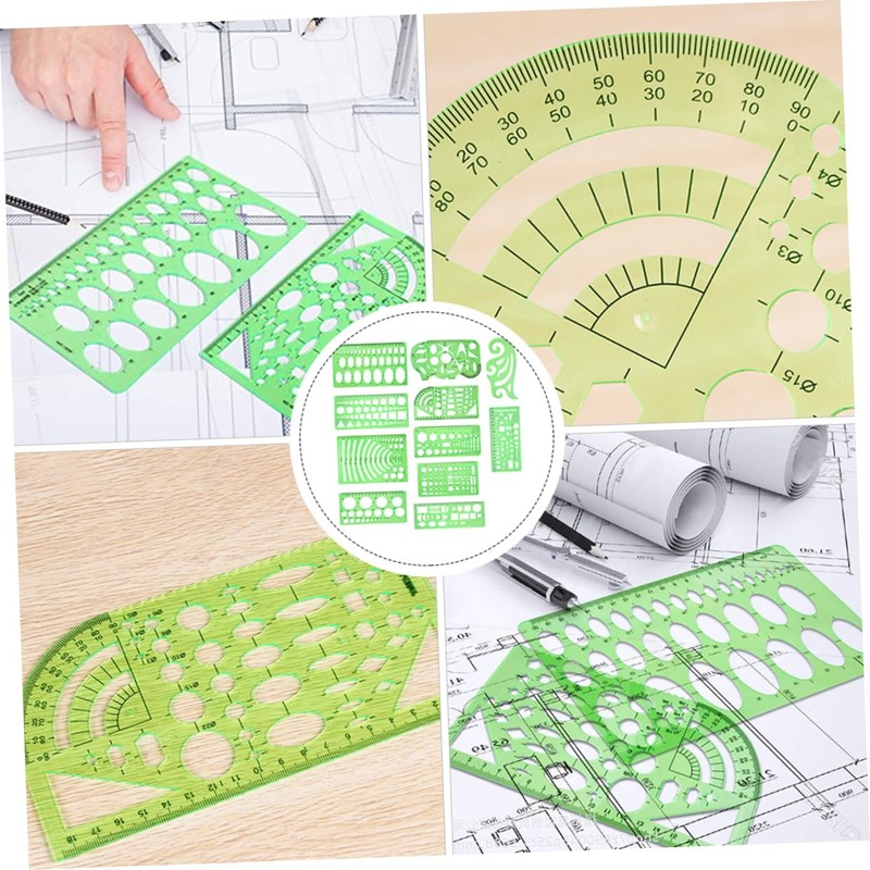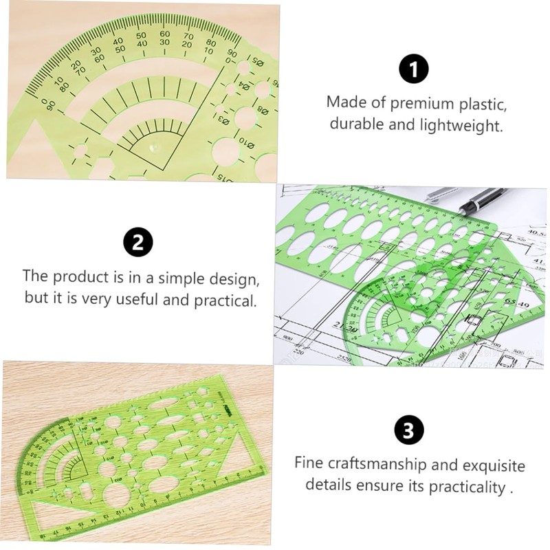 - Measuring template rulers:the drawings templates are made of plastic which are and lightweight clear green color can protect our eyes,Geometry Drawing Template