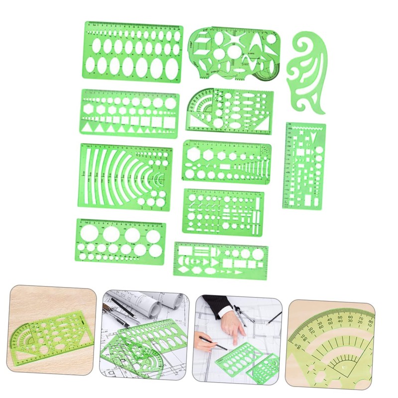 - The drawings templates are made of plastic which are and lightweight. Clear green color can protect our eyes drawing templates.