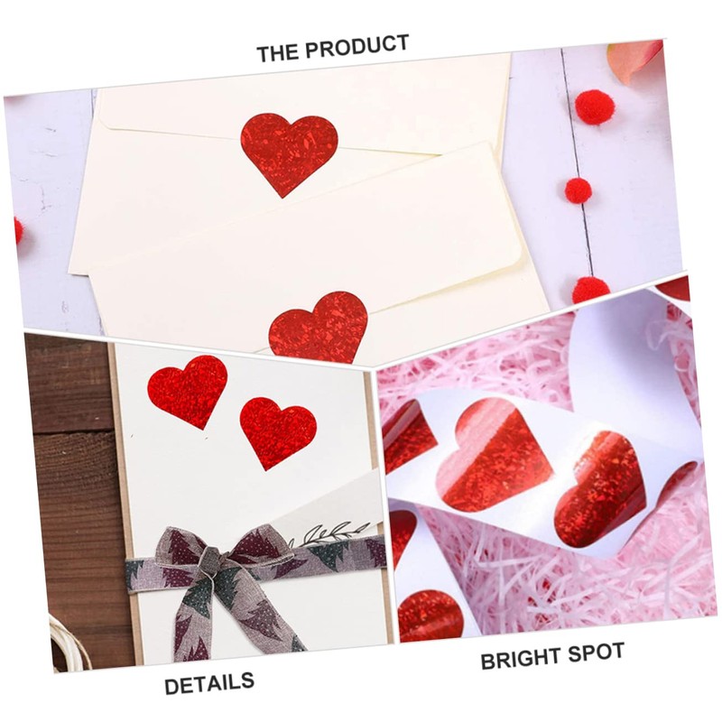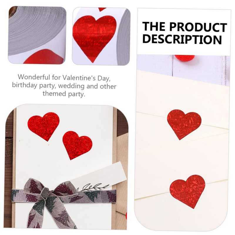 DOITOOL 1Roll Heart Shaped Stickers Valentine's Day Decorative Decals Labels for Invitations and Crafts for Celebrations Weddings and Anniversaries