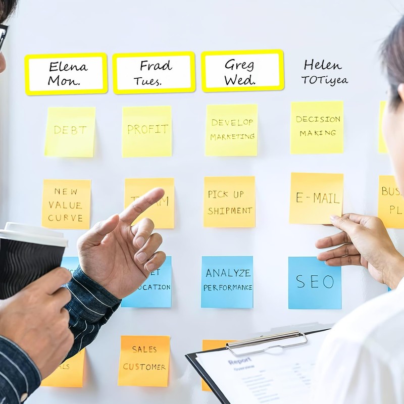 - Dry erase magnet labels:dry erase magnets have magnetic back, can be firmly sucked in the refrigerator whiteboard or iron objects,name tag sticker