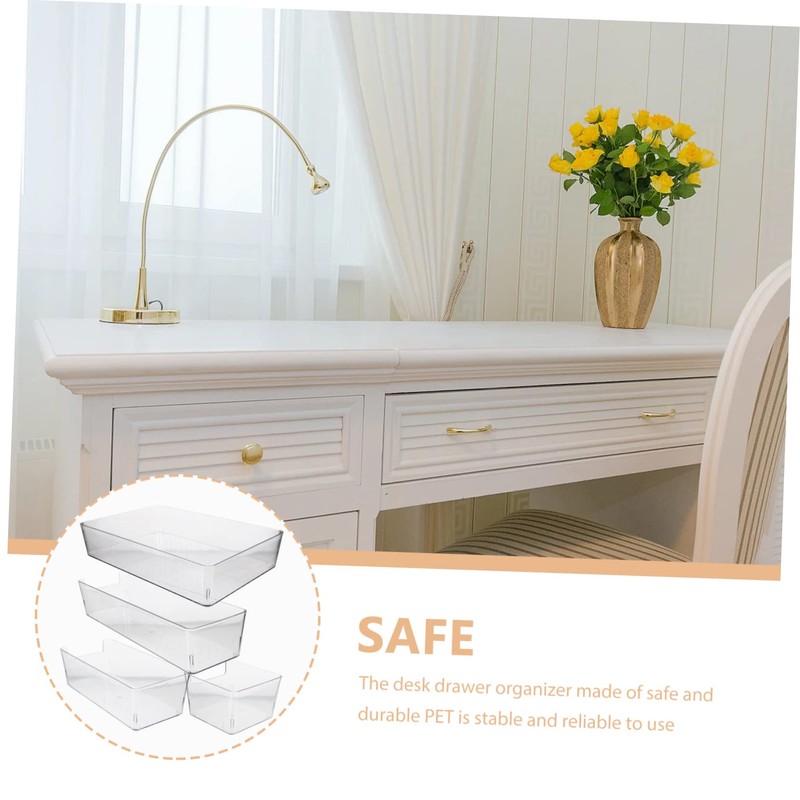 -Made of PET material, sturdy and for daily use, and wear resistant Desk Drawer Organizer Tray.