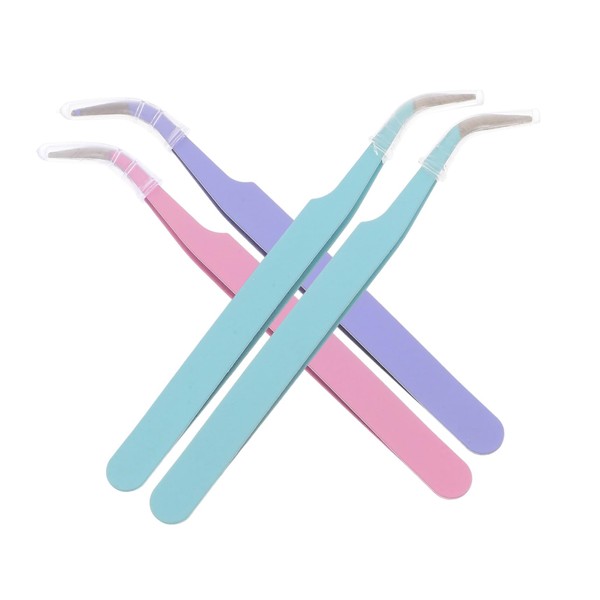 DOITOOL 4Pcs Stainless Steel Curved Tweezers for Nail Art Eyelash Extensions Stickers Scrapbooking Durable Ergonomic Design with Tip Protection for Comfortable Use