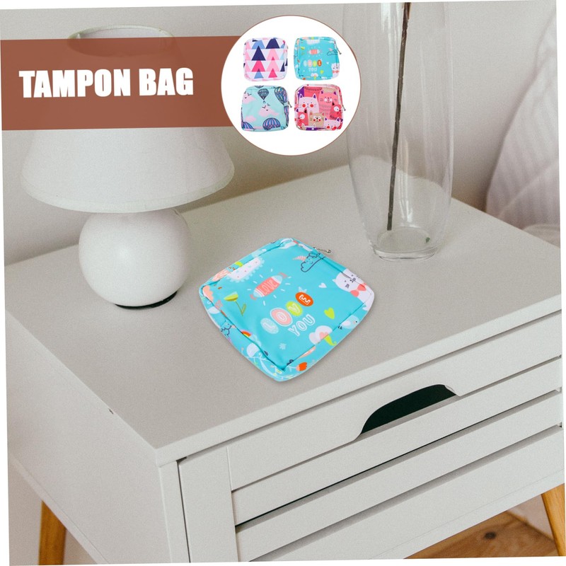 DOITOOL 4pcs Tampon Bag Portable Sanitary Napkin Pouches for Girls Cute Oxford Cloth Period Storage Bags for Coins Cards More Durable Convenient Zipper Design Students and Travel