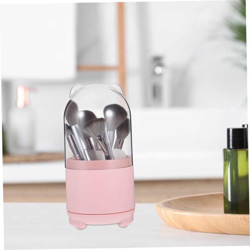 -Color:Pink rotating makeup brush holder