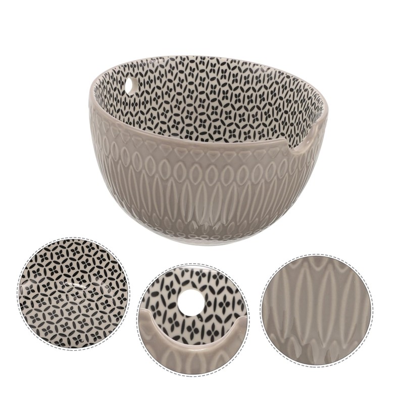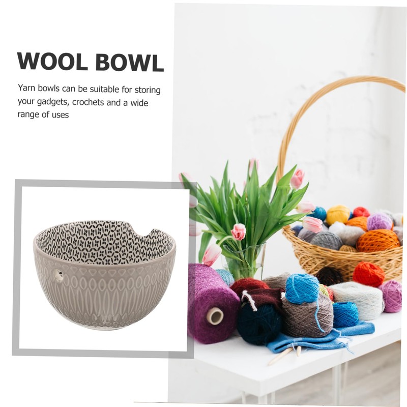 DOITOOL Yarn Bowl Ceramic Crochet Holder for Yarn Storage Grey Simple Pattern Organizing Bowl for Knitting Crocheting Supplies Portable Craft Tool for Easy Use