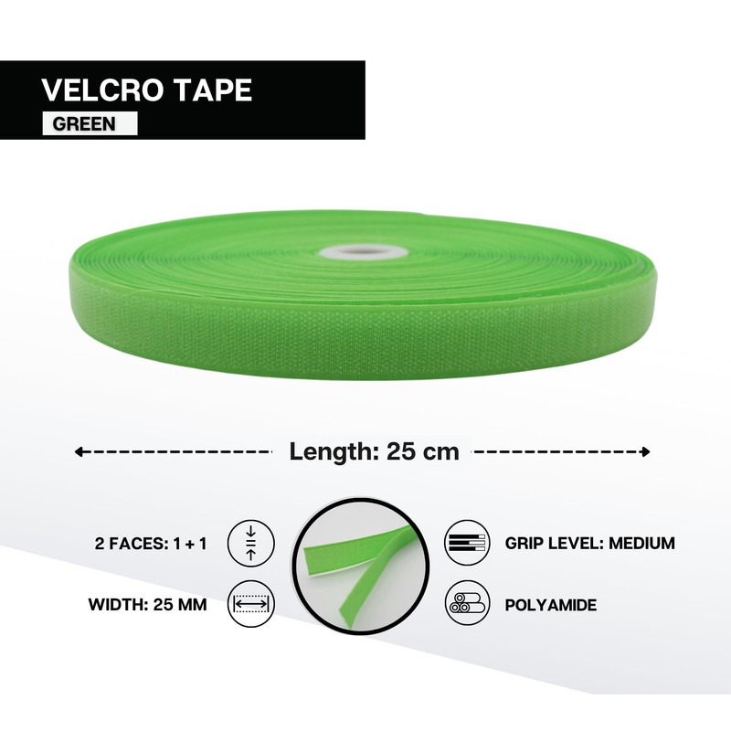 DOJA Barcelona | Hook and Loop Sewing Tape | Green Sewing Hook and Loop | 1 Pack | 25 m Length | 25 mm Width | Coloured Hook and Loop for Sewing | Strong Hook and Loop for Backpack, Jacket, Shoes