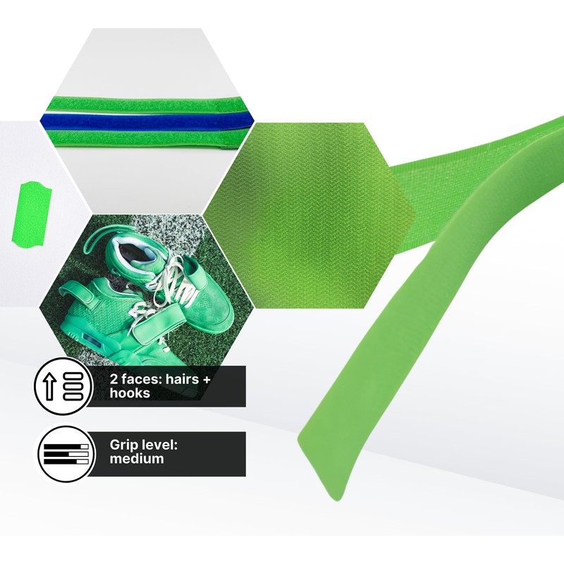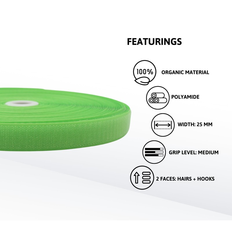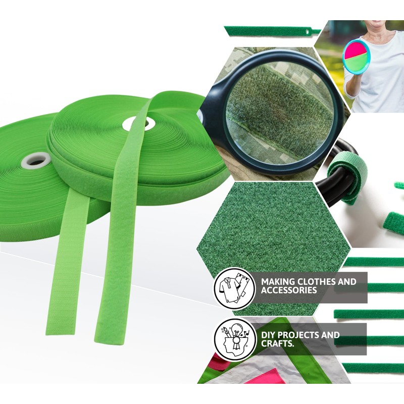 DOJA Barcelona | Hook and Loop Sewing Tape | Green Sewing Hook and Loop | 1 Pack | 25 m Length | 25 mm Width | Coloured Hook and Loop for Sewing | Strong Hook and Loop for Backpack, Jacket, Shoes