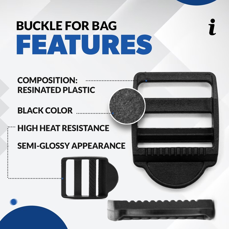 - Pack of 10 plastic webbing buckles for 25 mm belts. It is a very versatile item for attaching heavy loads. So it is suitable for everything from school bag to parachute and for your own DIY projects. Our buckles will be essential to attach or liven up any load securing. Remember to keep your fasteners and buckles in good condition so you can enjoy your trips in comfort.