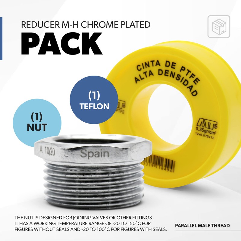 - Reducer | 1/2 inch x 1/8 inch | materials | chrome plated + Teflon | other names and uses: tap thread reducer, water connection reducer, brass reducer, IG-AG reducer, thread adapter, tap reducer, thread reducer, thread reduction nipple