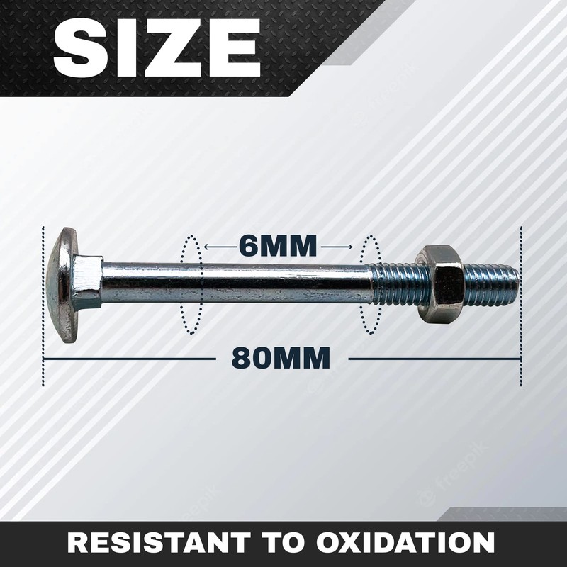 DOJA INDUSTRIAL Carriage Bolts and Nuts Set, 6 x 80 mm, Pack of 20, Round Head Bolts, Carriage Bolt with Locking Nuts, Round-Head Screws, Round-Head Screws, Threaded Screws