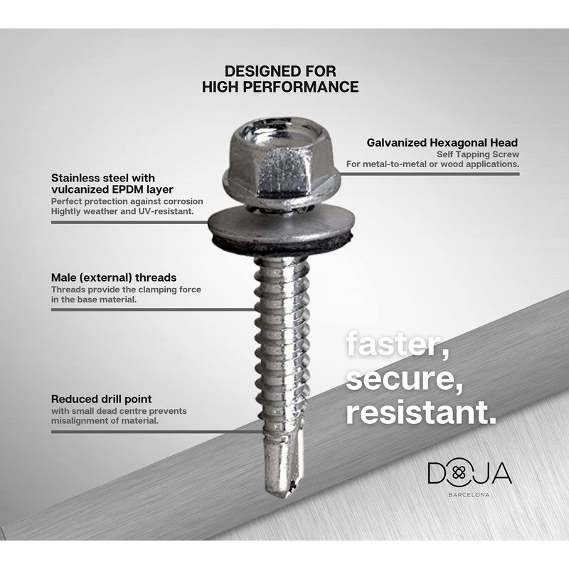 - Do you need to attach a plate or cover? Are you tired of the uncomfortable aluminium rivets? Our self-drilling drill head screws do the job for you by making and holding the hole with power and ease. Our combo also includes a cover cap that covers all your requirements. The screw cover is available in grey. DOJA Industrial wants to be your trusted brand, and we only offer the best quality products.