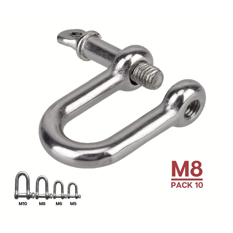 DOJA Industrial Shackle, Galvanised Steel, M8, Pack of 10, Shekel High Strength for Hanging Punching Bags, Steel Ropes, Shackle, Chain Shackle, Large Connector, Steel Chain Schege