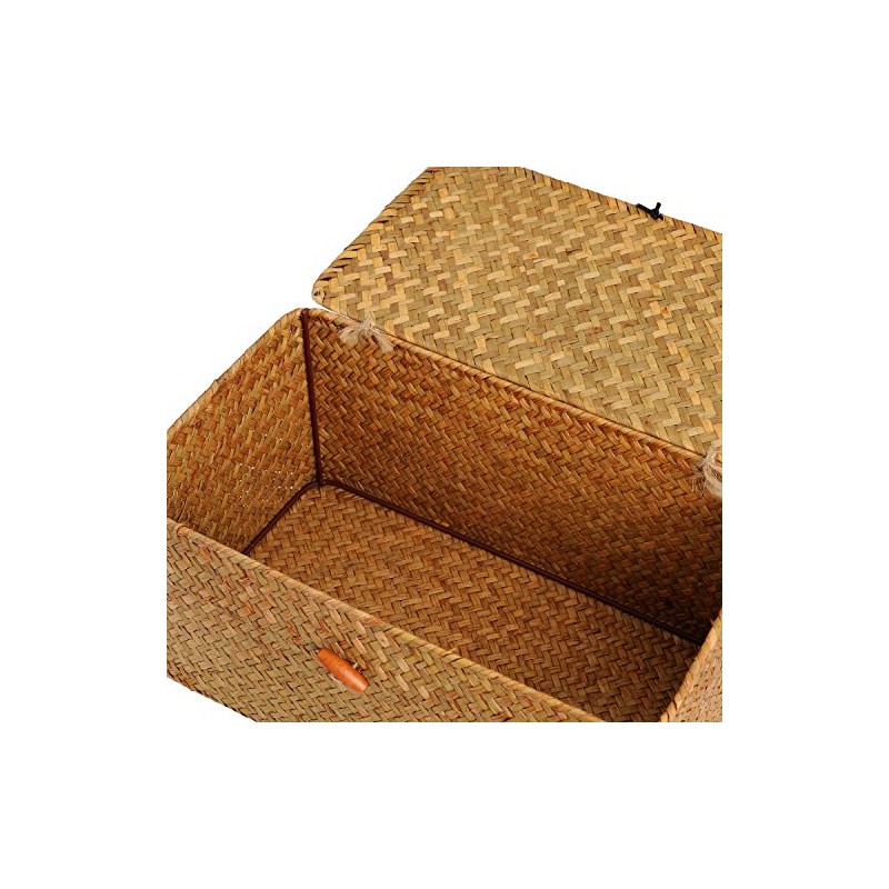 - 100% Natural Seagrass Woven Rattan Basket, Rectangular Design with Lid