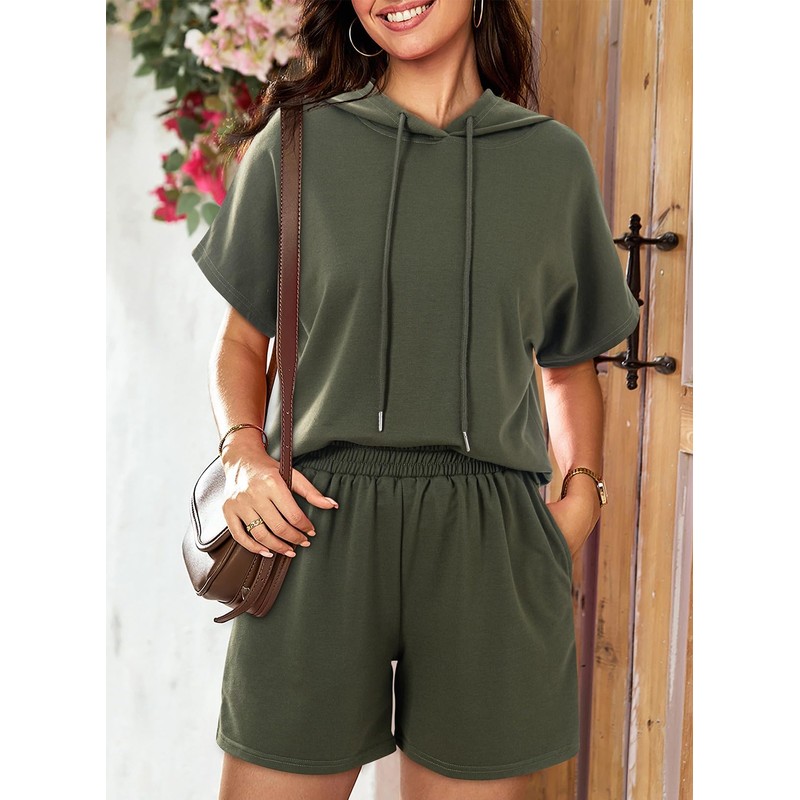 Dokotoo Lounge Sets For Women Summer Cozy Casual Hoodies Womens Clothes Resort Wear Crew Neck Short Sweatsuit Gym Matching Pajamas Tracksuit Matching Sets With Pocket Green Medium