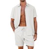 Dokotoo Men Men's Vacation Outfit Summer Short Sleeve Sets for Men Solid Linen Beach Outfits Casual Cuban Button Down Shirts Drawstring Shorts with Pockets White XX-Large