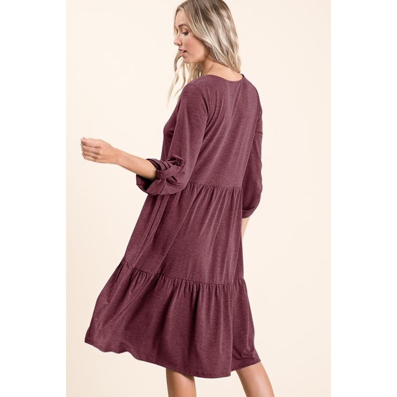 Dokotoo Women's V Neck Ribbed Knit Mini Dress Long Sleeve Button Down Empire Waist Swing Dresses Office Dresses for Women with Pockets Burgundy Small