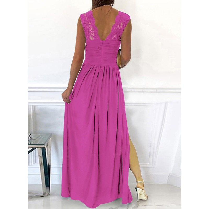 - Long dress features v-neck, sleeveless and side split design, which is sexy and flattering. Ruched detail of the high waisted dress is elegant and chic, showing off your body shape and fashion taste.