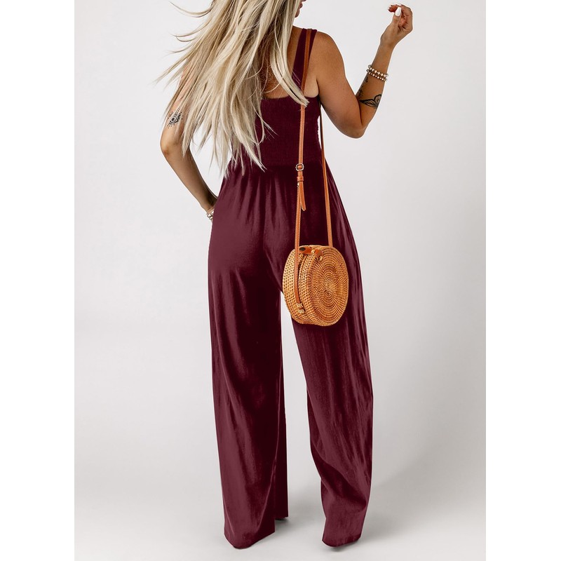 - Feature: One Piece Sleeveless Jumpsuits, Square Neck, Wide Leg Pants, Two Side Pockets, Solid Color, Stretchable Long Pants Jumpsuit, Loose Fit, Casual Style.