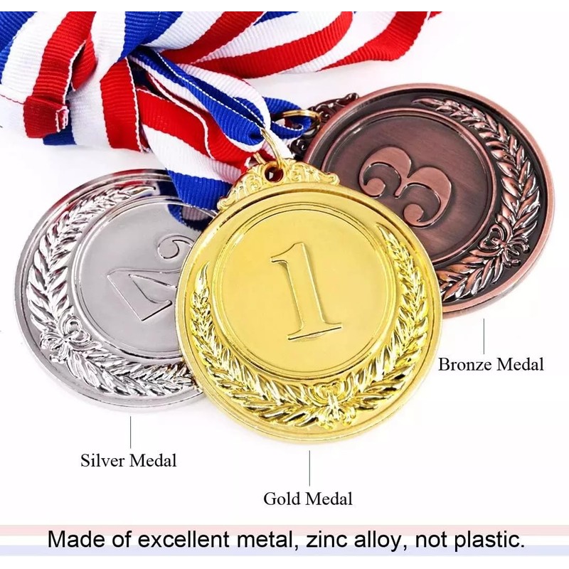 - Diseño de la Medalla:Este set incluye 12 medallas de premio estilo olímpico en oro, plata y bronce, con un diseño clásico de metales. Incluye 3 tipos de medallas: medalla de oro, medalla de plata y medalla de bronce, 4 piezas por color, un total de 12 piezas, cada una equipada con una cinta, de diseño hermoso.