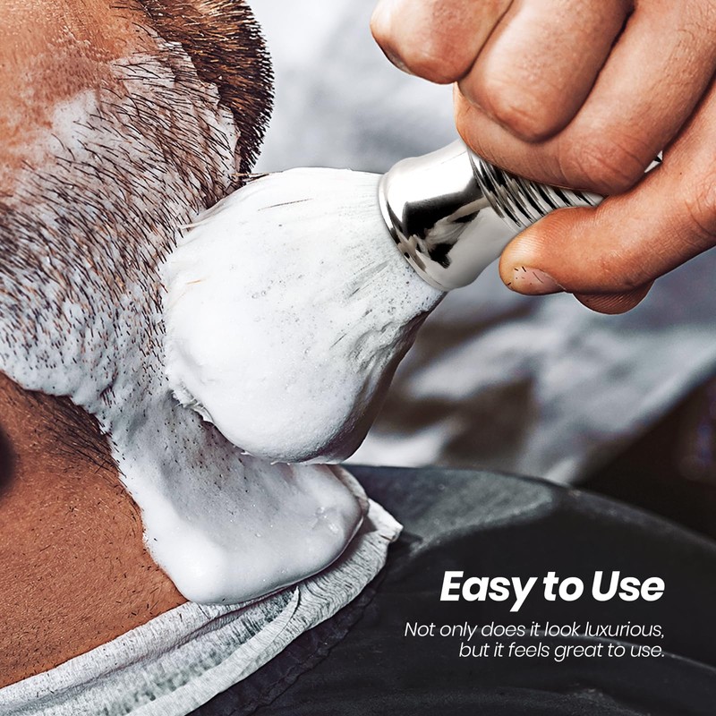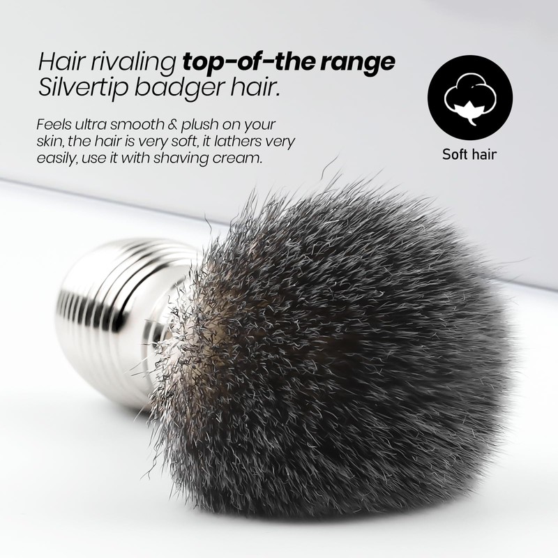 - 【SMOOTH, PLUSH】Shaving brush with unique man made badger style hair rivaling top-of-the range Silvertip badger hair. feels ultra smooth & plush on your skin, the hair is very soft, it lathers very easily, use it with shaving cream.