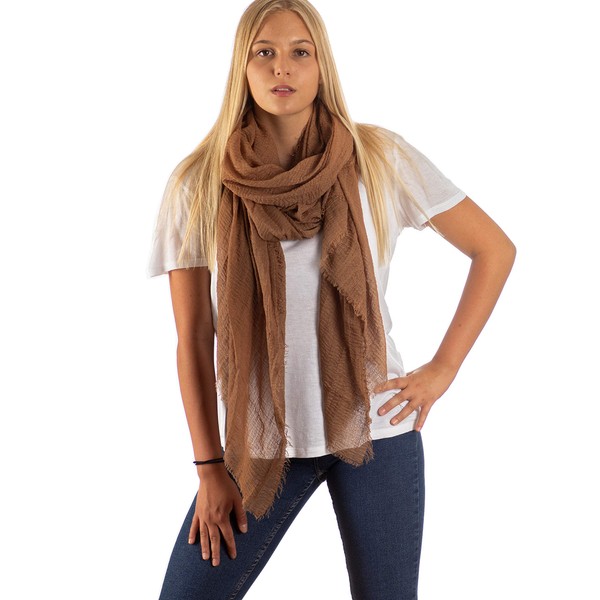 The wrinkled texture of the fabric and the frayed edges give the women's fashion XXL scarf a special look