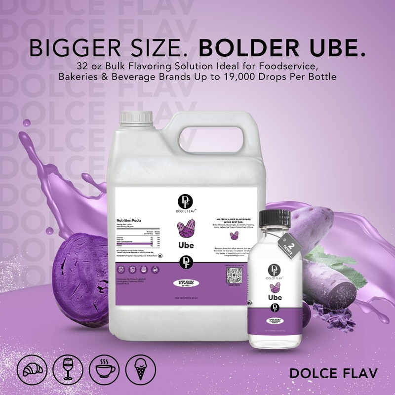 Dolce Flav Ube Purple Flavoring – 32 oz. – Premium Flavoring for Ice Cream, Desserts, Boba, Beverages & Baked Goods | Ideal for Restaurants, Bakeries & Coffee Shops | Made in America