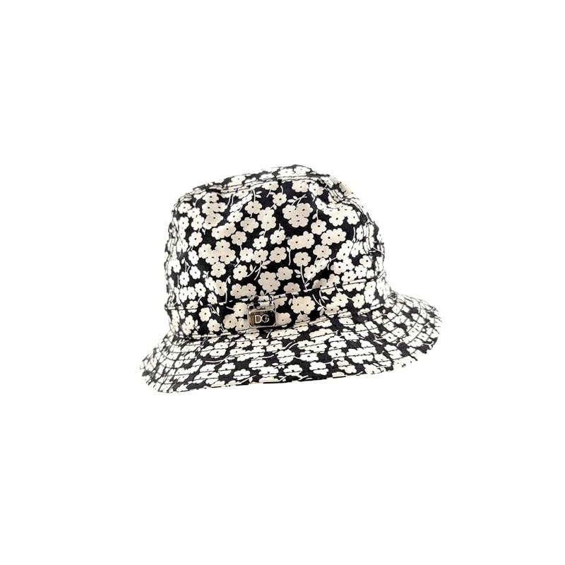 Dolce & Gabbana 100% Silk Black and White Floral Bucket Hat-57 for Womens