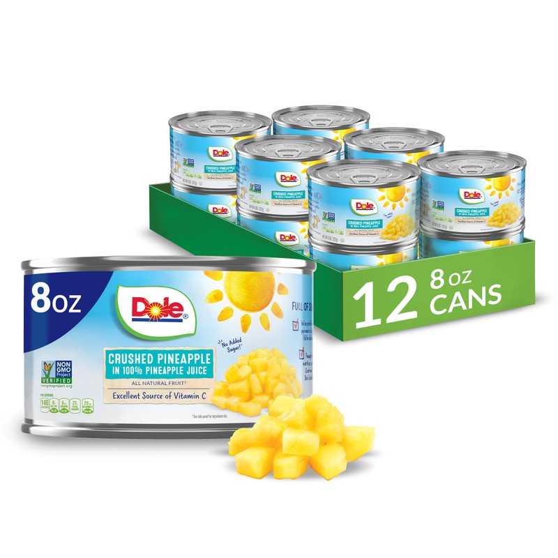Dole Canned Fruit, Crushed Pineapple in 100% Pineapple Juice, Gluten Free, Pantry Staples, 8 Oz, 12 count