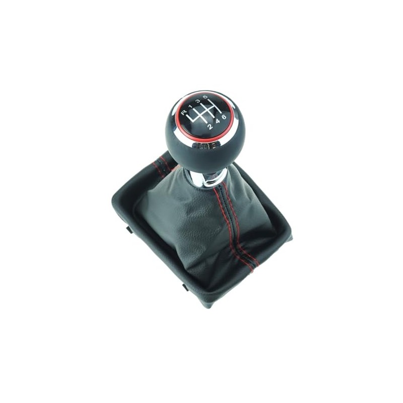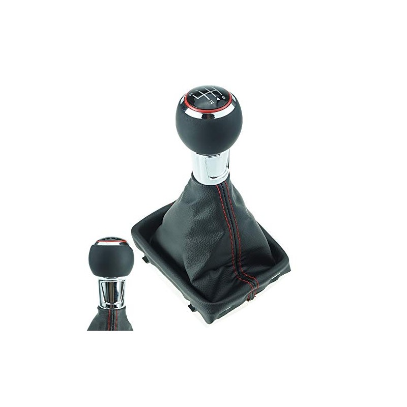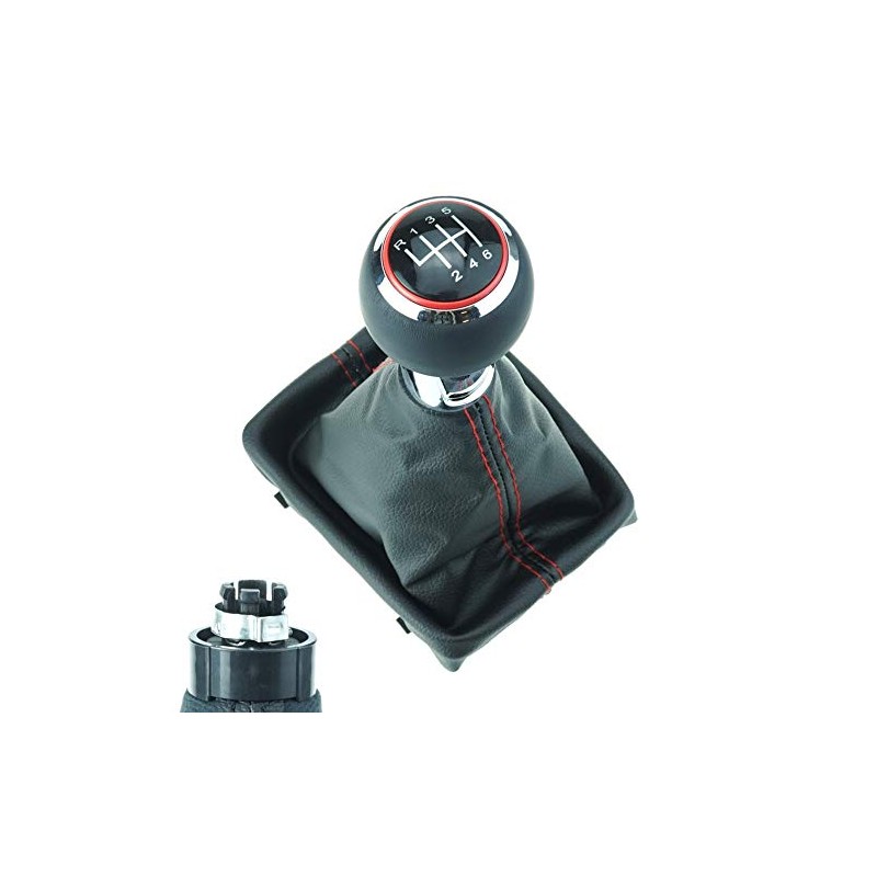 DoLED Smooth Gear Knob + Gear Stick Gaiter + Frame - Leather - Red Stitching - 6 Gear Replacement Part