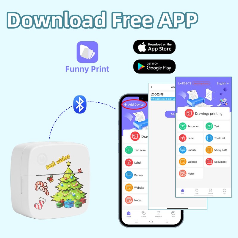- ๐๐ฎ๐๐ ๐๐ผ ๐๐ผ๐ป๐ป๐ฒ๐ฐ๐๐ฒ๐ฑ: This multifunctional printer effortlessly connected through Bluetooth to your mobile phone after you download the "Funny Print" APP, compatible with IOS & Android. Printed more crisp compare with other 203dpi printer, suitable for family, office, students, amateur archivists, moms etc.