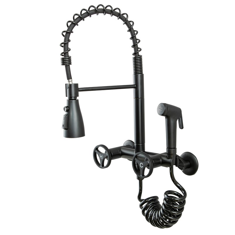 - 2 Handle Design - The faucet features a double-lever design for precise control over water temperature and flow. Enjoy an aerated stream for everyday use and a powerful cleaning rinse spray for tough jobs. The commercial-style open-coil spring design enhances durability.