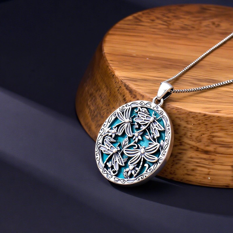 DOLIOX Genuine Turquoise Dragonfly Necklace, Sterling Silver Boho Native American Western Pendant Jewelry Birthdays Gift for Women
