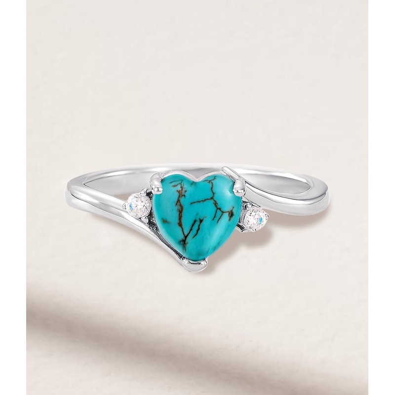 - Natural Heart-Shaped turquoise: This elegant ring is crafted from smooth textured natural heart-shaped turquoise and 925 sterling silver, side zircons make it more sophisticated and charming