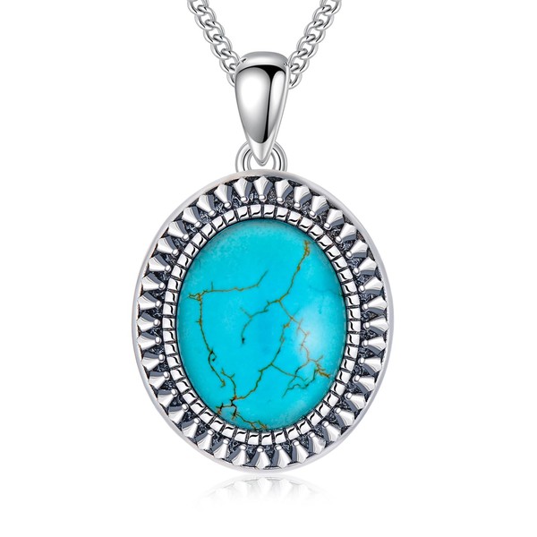 DOLIOX Genuine Turquoise Necklace for Women 925 Sterling Silver Real Southwest Native American Pendant Jewelry with Oval Gemstone for Her Wife Mom