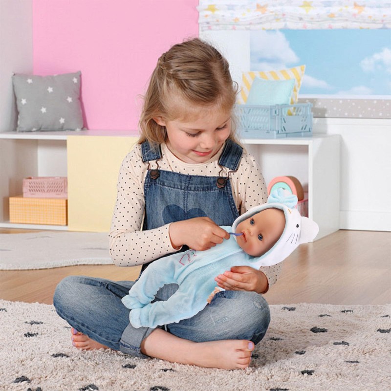 Doll Clothes for Baby Dolls, Clothing Compatible with 35-43 cm New Born Baby Dolls, Includes Jumpsuit, Hat, Socks and Hangers, Cute Blue Cotton Cat for Boys and Girls