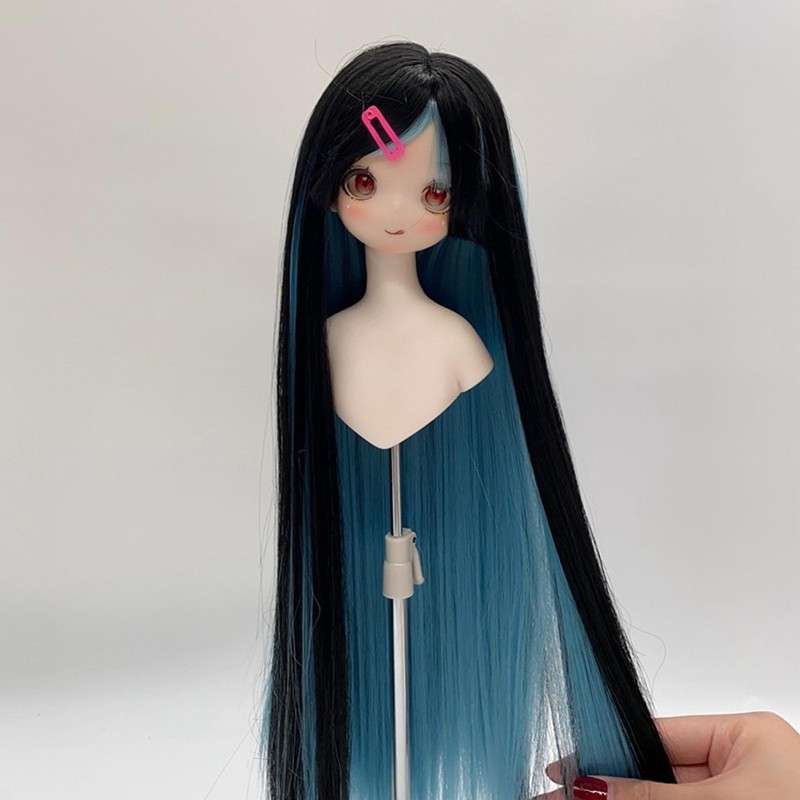 Doll Long Straight Wigs, Blue and Black Beautiful Color Heat Resistant 1/4 Ball Joint Doll Wigs with Bangs for DIY Simulation Doll Modeling (Black Lake Blue)