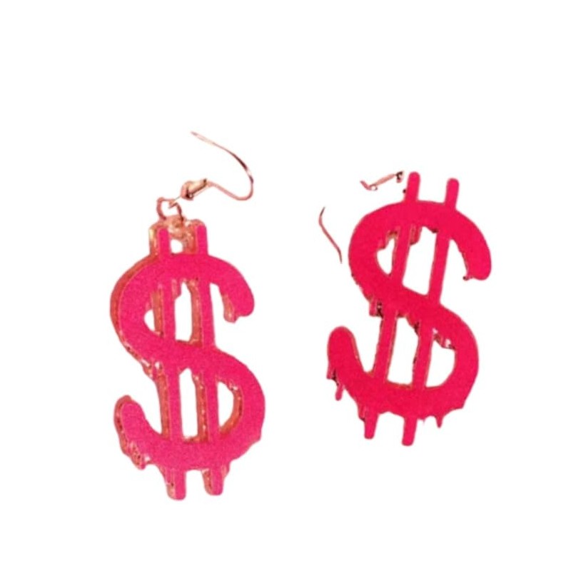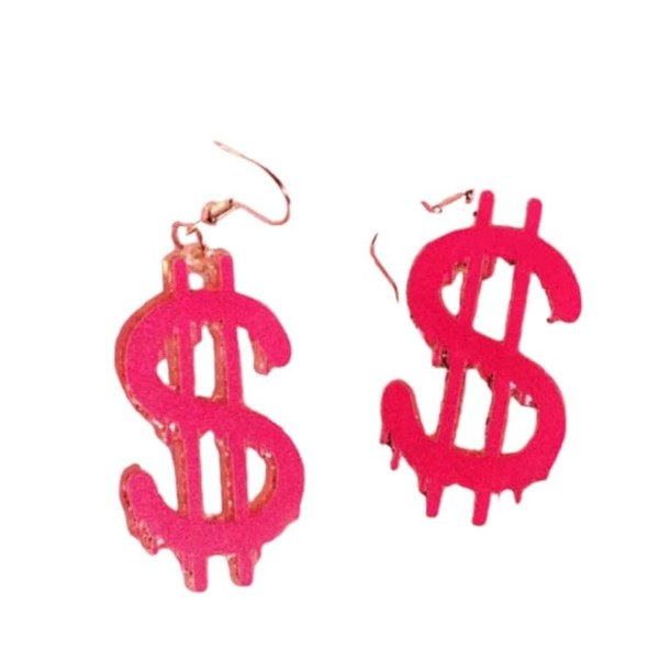 Dollar Sign Pink Gold Drop Earrings Dope Style Boss Lady