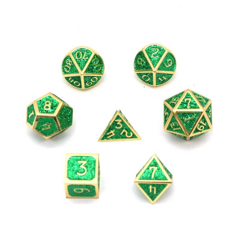 DollaTek 7pcs Polyhedral Metal Dice Set with Black Storage Bag for Role Play Dungeons and Dragons D & D Math Lessons (Shiny Deep Green)