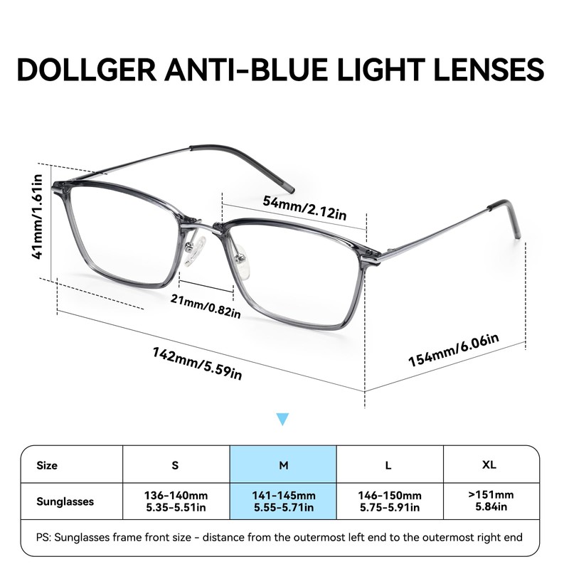 Dollger Blue Light Blocking Glasses Women Men Computer Eyeglasses Lightweight TR90 & Metal Small Square Rectangular Frame Eye Protection Transparent (Transparent Gray Frame/Transparent Lens)