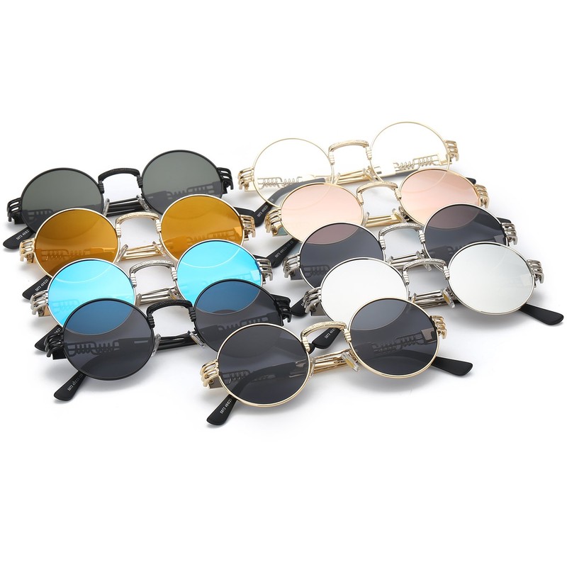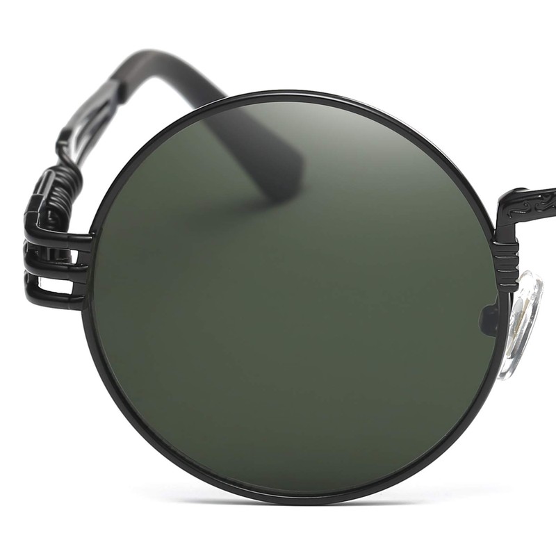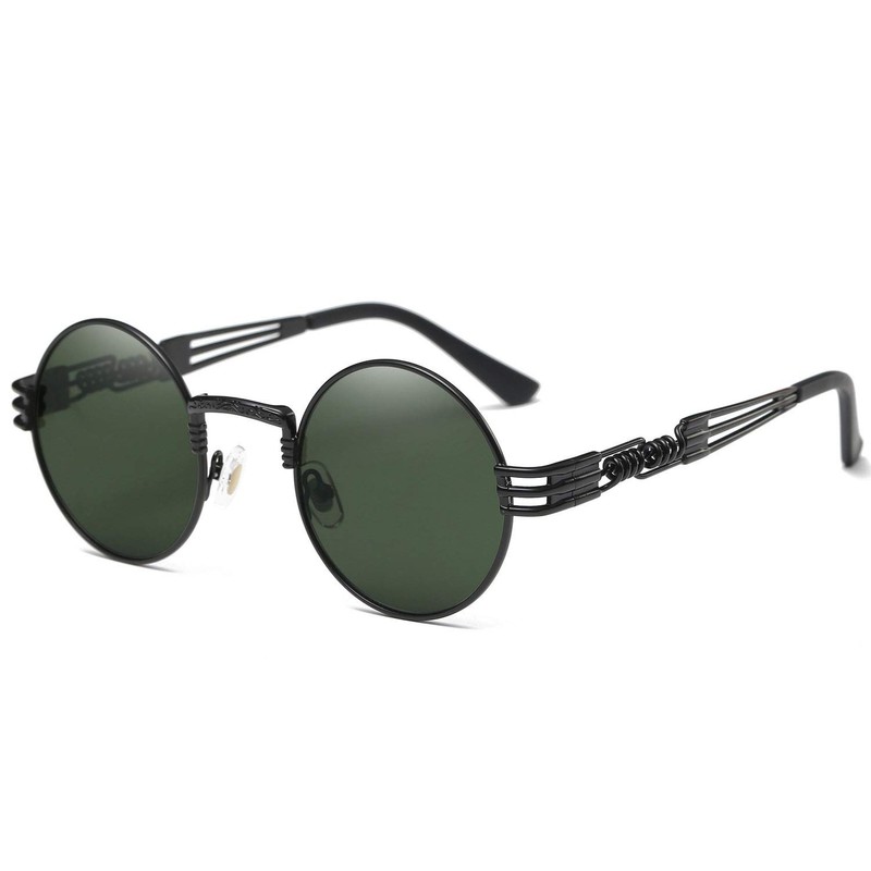 Dollger Dark Green Glasses Round Steampunk Women Metal Frame Sunglasses