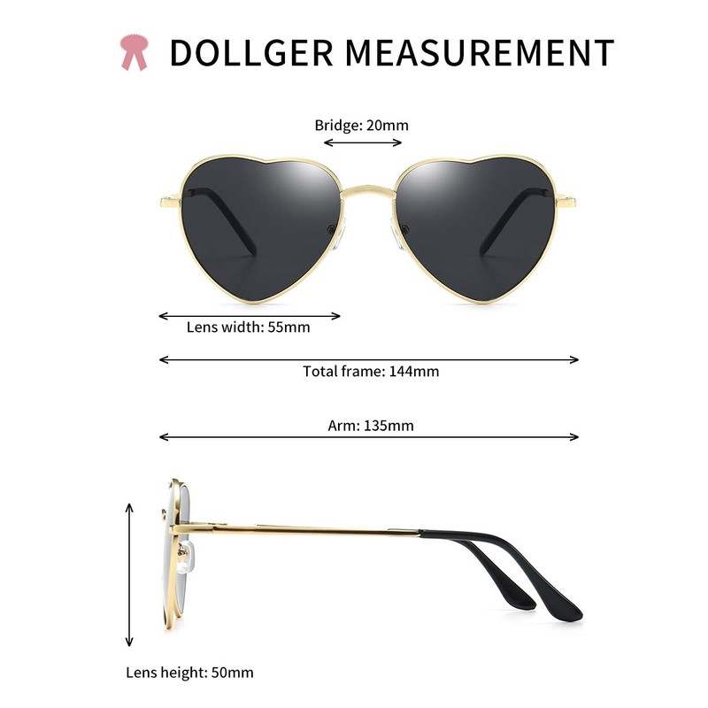 Dollger Sunglasses Womens Heart Shaped Sunglasses Thin Metal Frame Lovely Heart Style for Ladies UV400 Protection
