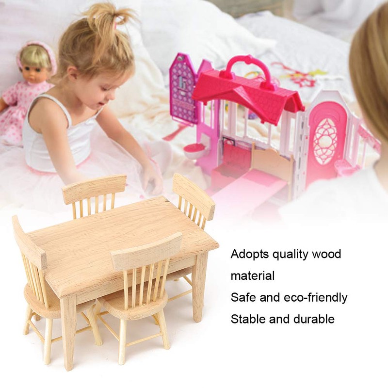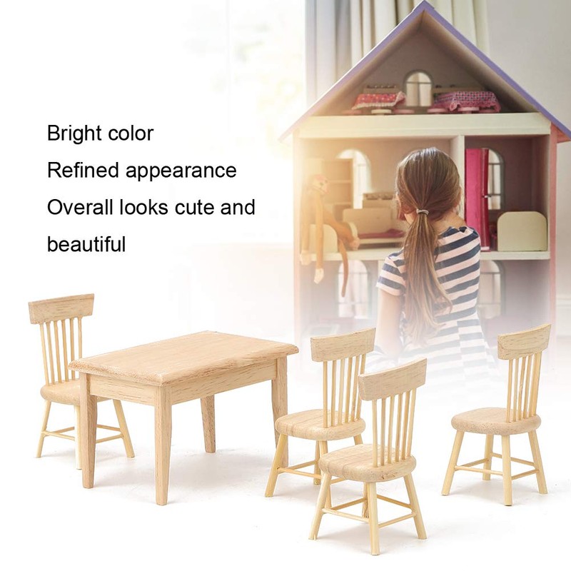 Dollhouse Desk Chair Set, Miniature Simulated Desk Chair Mini Wooden Dining Room Furniture Toy Accessory for 1:12 Scale Dollhouse (table and chair set)