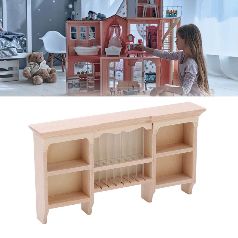 - Wall Mounted: The hanging cabinet design will add storage space to your dollhouse kitchen for cookware. Underneath the hanging cabinet you can place other things. You can place some ornaments on the top to add some detail to the dollhouse.