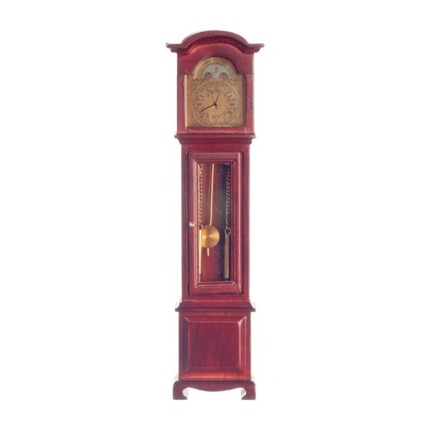 Dollhouse Miniature 1:12 Wooden Working Quartz Mahogany Grandfather Clock