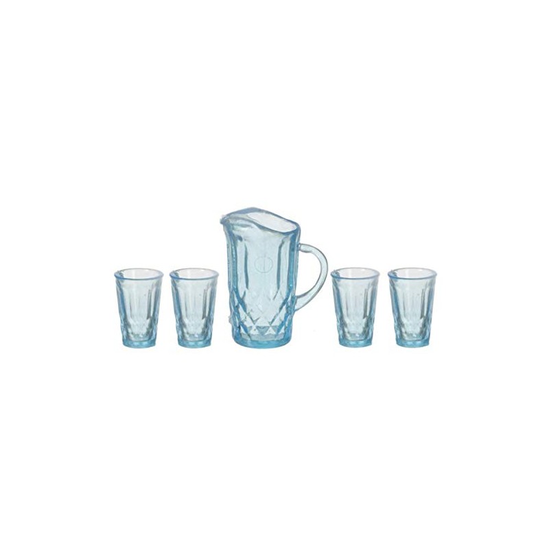 Dollhouse Miniature Chrysnbon Blue Pitcher with 4 Glasses